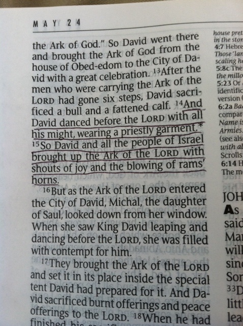 I find this story intriguing because his wife, Michal, judges what she sees and she feels contempt for David. Later, he returns home ready to bless his own family and Michal tells him she is disgusted with his behavior.