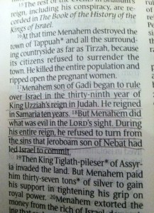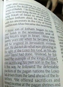 I’ll admit that Kings is not one of the most interesting books in the Bible- a lot of bad kings, not very many good kings, and extremely few great kings. I read through a chronological Bible several years ago and I was stunned by the passages we are reading right now in Kings.