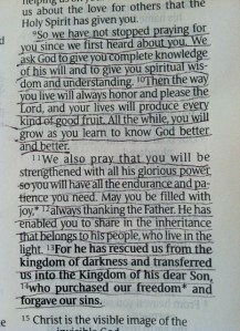 Paul prayed an awesome prayer for the Colossians and I pray these same things for all of us today…..