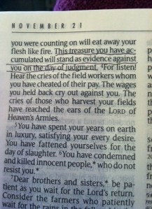 And I think James is telling us this same thing today. Americans are the richest people on our planet and James is telling us that this wealth is evidence against us when God sees all of the people on earth who are hungry and in need.