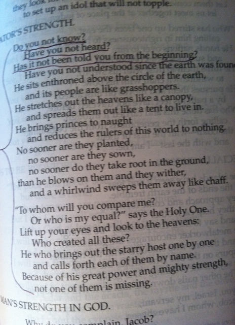 It has been told to us from the beginning – since the earth was founded.July 12 Isaiah 40, 2013