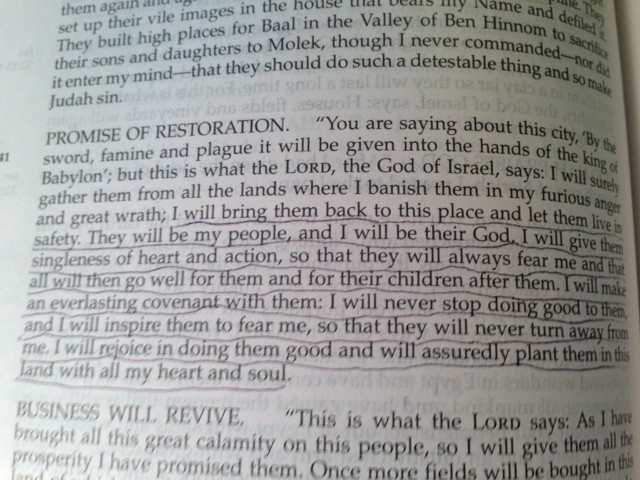That is the restoration God promises to each of us just as he promised the Israelites in Jeremiah 32.