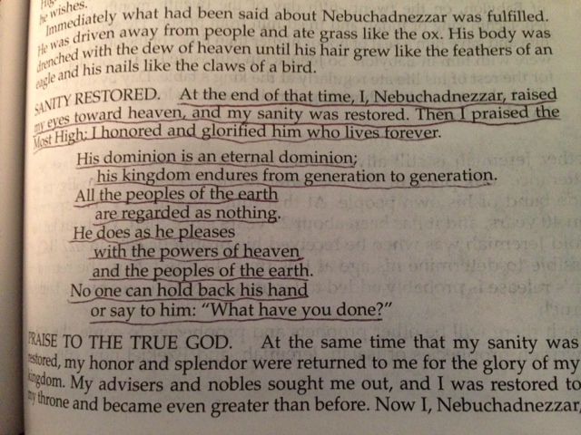 So I come back to God’s word and I feel like King Nebuchadnezzar when he raised his eyes toward heaven and his sanity was restored.