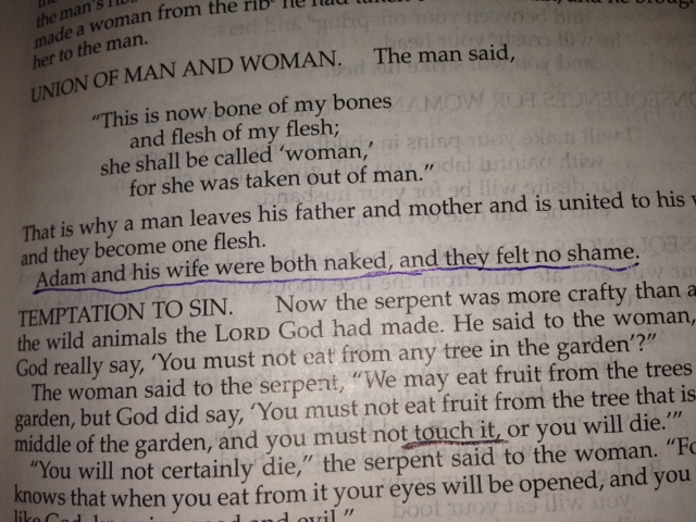 They were naked and they walked with God every day – innocent.