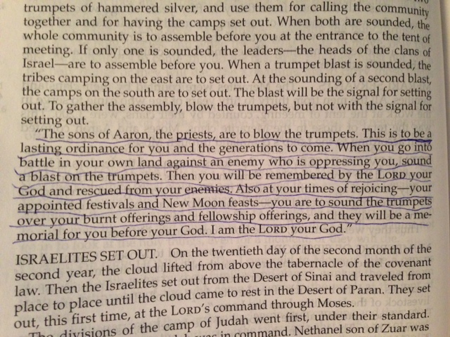 ‘When you go into battle, sound the trumpets. Then the Lord will rescue you from your enemies.’