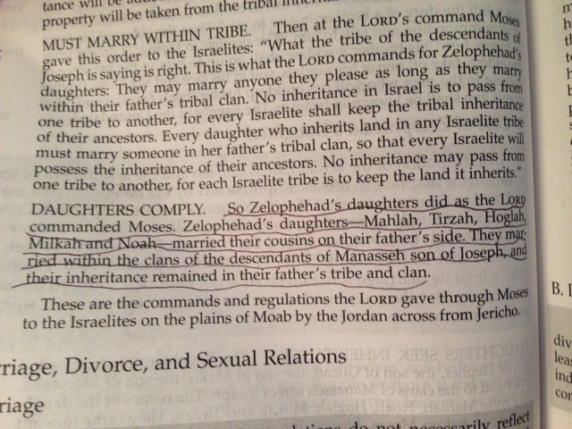 This just wasn’t done in this culture. The sons inherited or the brothers or the male cousins. Not the daughters. As we read further in this chapter, I can just hear the male contingent of the family saying, ” But! But! But!” and so we see God put conditions on the inheritance so it stays within the clan.