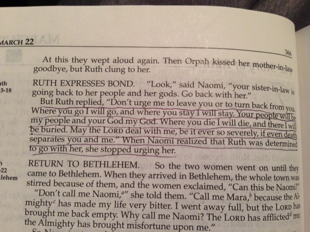 And she chose to go back to Bethlehem with Naomi. She chose to become part of Naomi’s people. She chose to love and serve Naomi’s God.