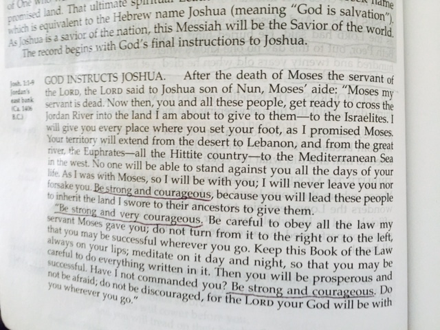 Why? Because Joshua was going to have to remember that he needed God’s help to do this. This was way too big of a mission to try to pull off on his own. Joshua by himself is not strong enough for what he is going to have to do. Joshua by himself is not brave enough to face the challenges that lie ahead for the Israelites. So God is telling Joshua what he will give Joshua strength and courage – as long as Joshua depends on God.