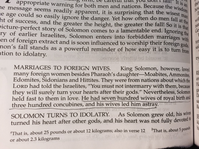 We read King Solomon’s sad story in 1 Kings of turning away from the One True God in order to serve various detestable idols.