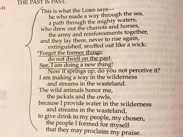 Isaiah tells us in his 43rd chapter to forget the former things.  Don’t dwell on the past.