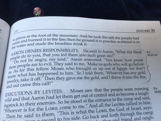 Moses is able to appeal to God’s mercy and save the lives of the people who didn’t worship the calf.  But when Moses came down the mountain, Aaron didn’t even want to own up to what he had done.  He blamed the people.