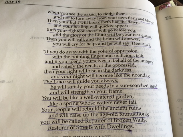 God tells us to stop finger-pointing and malicious talk. When we ‘spend ourselves’ on the needs of the hungry and oppressed, our light will shine out of the darkness around us. When we line up our lives with God’s purposes, he satisfies our needs and gives us strength.