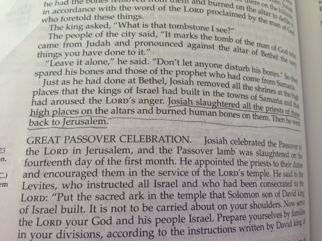 King Josiah brought all of the priests together and slaughtered them. The priests had been given a holy position of authority and responsibility and they had led the people astray with it. They not only told the people that idol worship was good, they led the worship and participated in all of the pagan rituals.