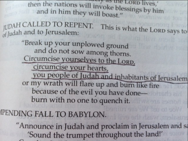 On the subject of circumcision which seems like a totally male thing, God expands our thinking when Paul teaches us in Romans in the New Testament that God is looking for is an internal circumcision of the spiritual heart of everyone who puts their faith in Jesus. The circumcision of the heart means our hearts are wide open to God as we love him with all of our hearts, minds and souls.