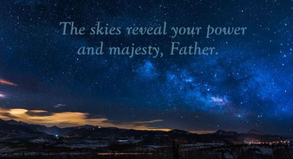 Everyday the skies teach me more about you, Father God. Night after night, they reveal your majesty. The skies don’t use words but their message stretches out over the whole earth. Everyone on this planet can know you, Creator God, just by looking up.