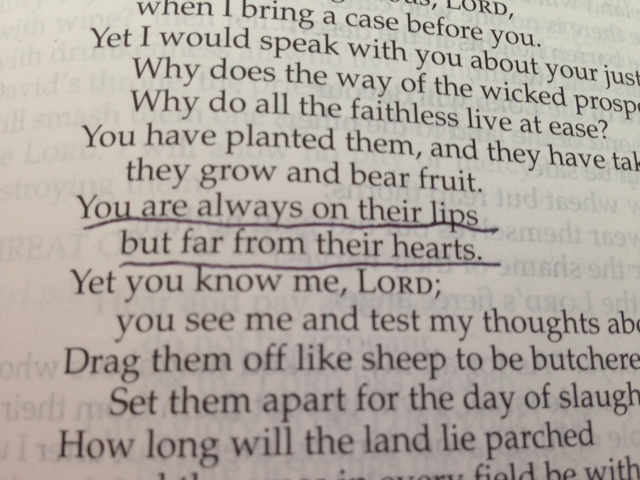 “You are always on their lips but far from their hearts.” says Jeremiah (12:2) as he talks to God.