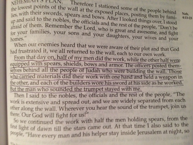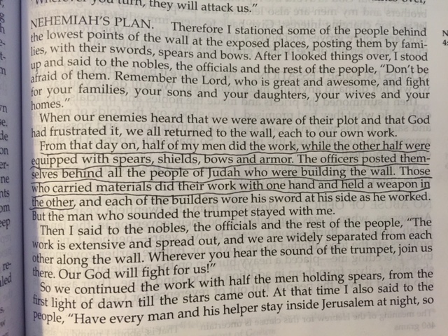 We carry our Shield of Faith with us everyday so we can deflect the flaming arrows coming at us from Satan and his army. He’ll try to distract me or harm me but my faith will keep me safe and steady.
